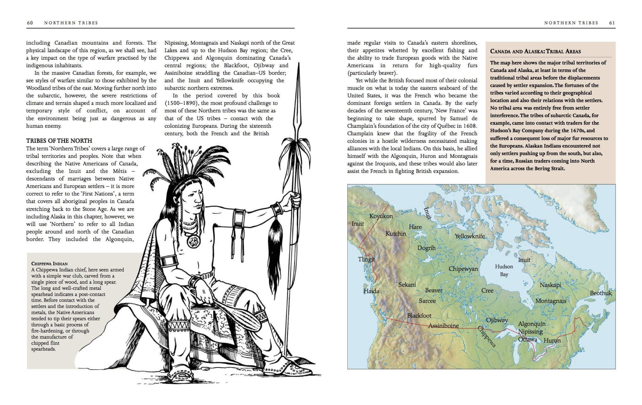 The book covers many different aspects of Native American warfare, including the fundamental changes brought about by the introduction of the horse and firearms, the use of mounted hit-and-run tactics by the plains-dwelling Sioux, the construction of war lodges by Blackfoot raiders and the widespread use of camouflage and stealth tactics by tribes such as the Cherokee.