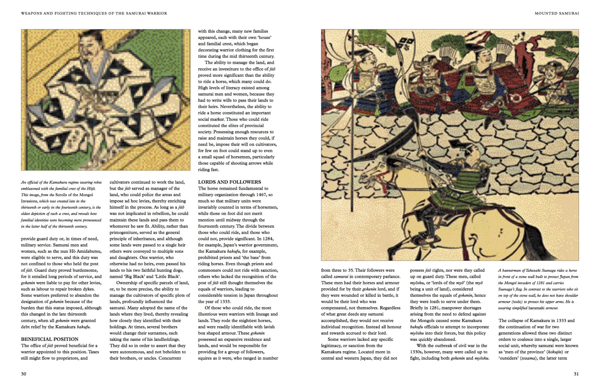 The book is illustrated throughout with more than 300 detailed line drawings and colour photographs showing the weapons, equipment, techniques and tactics of the samurai. Types of armour – such as ō-yoroi, haramaki and paper armour – and weapons – such as the tachi long sword, wakizashi short sword and yari (pike) – are depicted in detail.